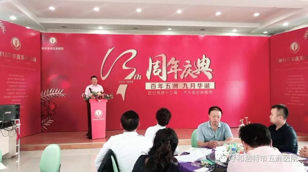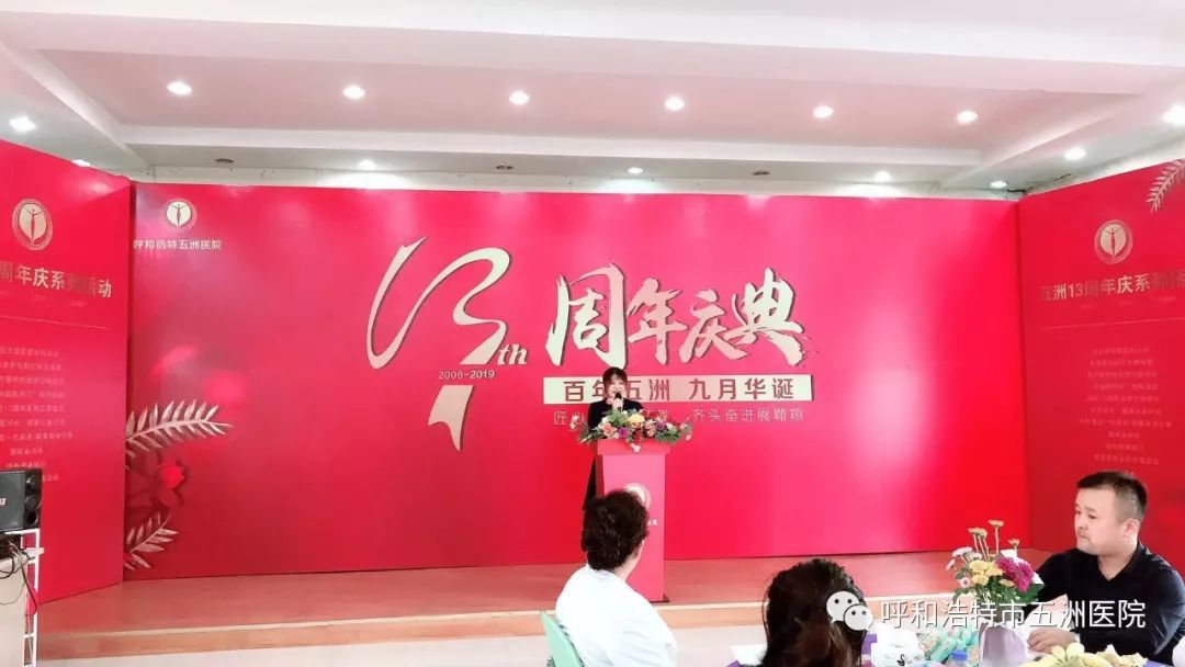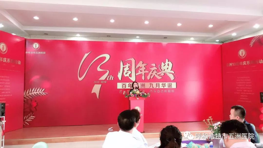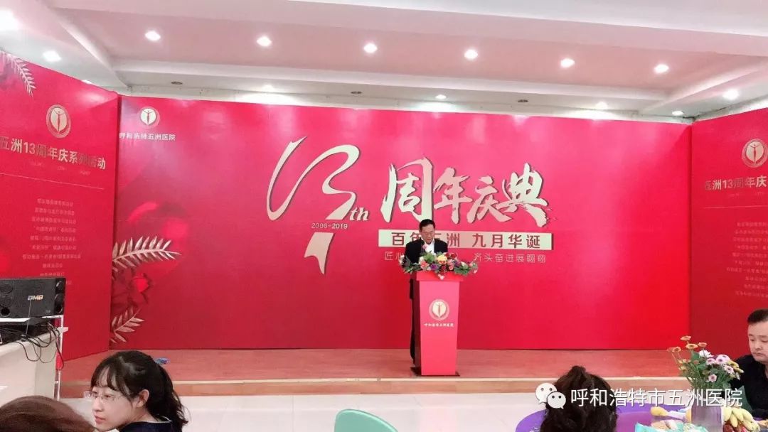 五洲医院院长向长期以来关心支持五洲发展的各级领导、媒体朋友、社会各界人士表示衷心的感谢!向五洲的全体同仁致以诚挚的问候!他说13年来,我们风雨兼程,荣辱与共,从2006年9月成立的呼和浩特五洲女子医院到如今成为呼和浩特五洲医院以来,我们始终坚持以人为本,以医疗质量和服务品质为中心的办院理念,服务广大宾客,13年来,我们管理团队前赴后继,在总经理和院长的带领下,全院职工团结一致,努力工作,经受了各种困难的考验与严峻的挑战;收获了喜悦,也承受了挫折。13年来,我们全院职工始终能齐心协力、砥砺前行,克服种种困难,一步一个脚印,不断加强科室建设,夯实基础,赢得了老百姓的认可和口碑,他向全院职工表示衷心的感谢!未来,他对呼和浩特五洲医院充满希望并对全体员工提出要求:必须要探索可持续发展的改革之路,增强学科建设,必须坚持以医疗质量为核心,提高服务质量,更新观念,自强不息,团结友爱,在忧患中不断挑战自我,以谋求新的突破与跨越。